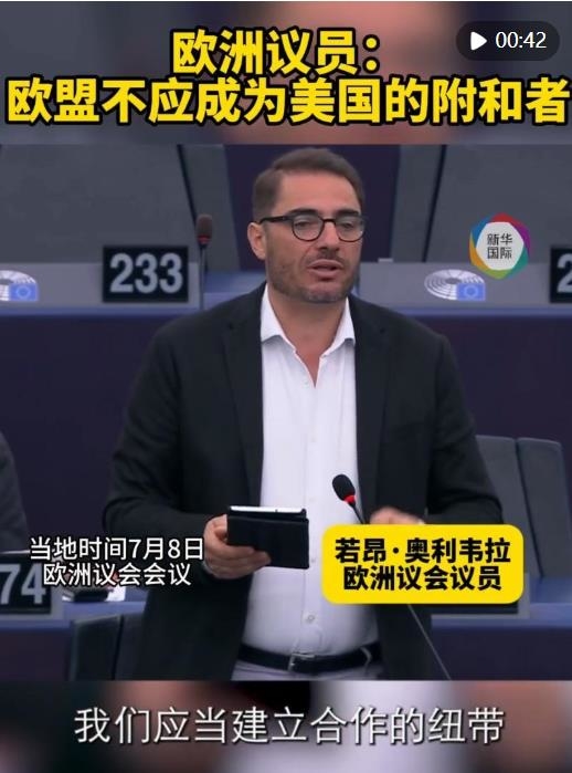 在8日的歐洲議會會議上,議員若昂·奧利韋拉在辯論中表示,歐盟不應成為美國對華的對抗和緊張升級政策的“附和者”。他說,建立合作紐帶,實現(xiàn)互利共贏才應是歐洲處理對華關(guān)系的基本態(tài)度。