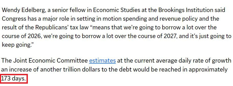 在美國(guó)布魯金斯學(xué)會(huì)高級(jí)研究員溫迪·埃德爾伯格看來(lái),共和黨稅法的出臺(tái)“意味著我們將在2026年借很多錢,在2027年還要借很多錢,而且會(huì)繼續(xù)借下去”。