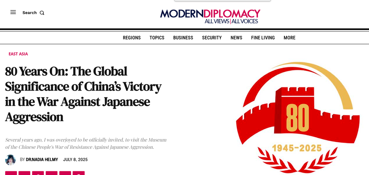 赫勒米教授在題為《80年過去:中國抗日戰(zhàn)爭勝利的世界意義》的文章中表示,中國抗戰(zhàn)勝利不僅是中華民族自強不息的壯舉,更為世界反法西斯戰(zhàn)爭勝利作出巨大貢獻,中國所作的犧牲應當為全世界所銘記。