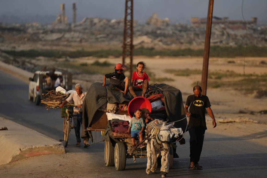 9月6日,巴勒斯坦人攜帶家當從加沙地帶北部撤離,前往南部。新華社/美聯(lián)