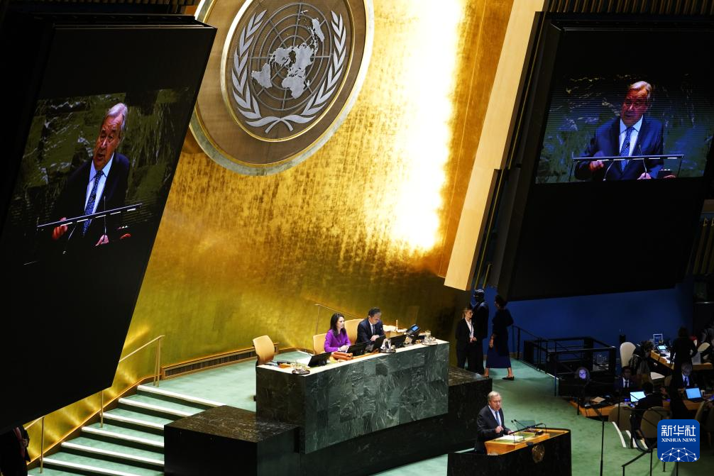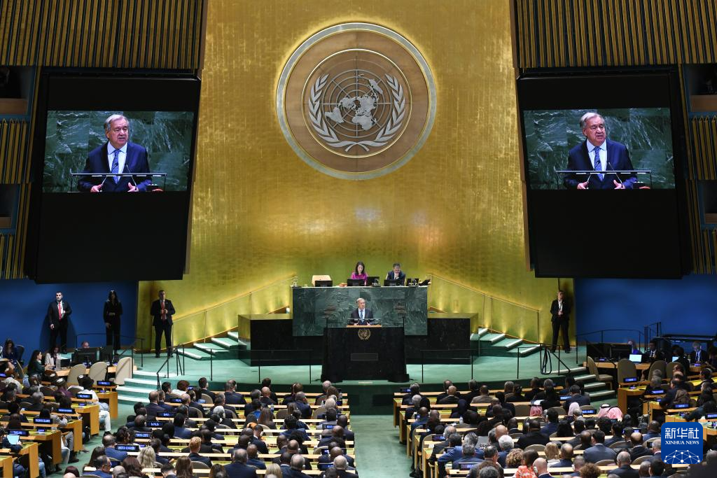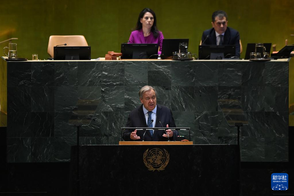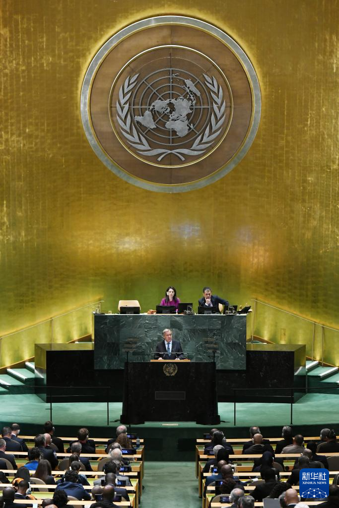 9月23日,在位于紐約的聯(lián)合國總部,聯(lián)合國秘書長古特雷斯在第80屆聯(lián)合國大會一般性辯論開幕式上致辭。新華社記者李睿攝