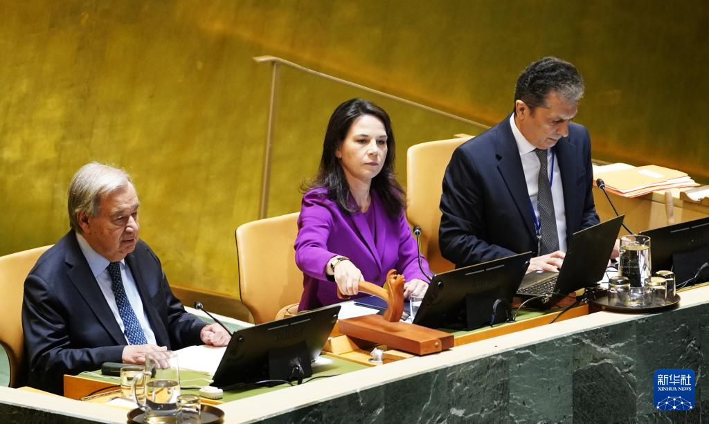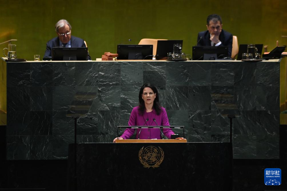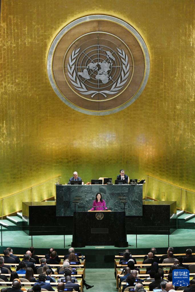 9月23日,在位于紐約的聯(lián)合國總部,第80屆聯(lián)大主席貝爾伯克(中)主持第80屆聯(lián)合國大會一般性辯論開幕式。新華社記者吳曉凌攝