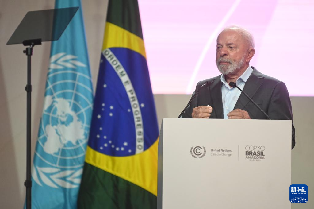 11月10日,巴西總統(tǒng)盧拉在巴西北部城市貝倫舉行的《聯(lián)合國(guó)氣候變化框架公約》第三十次締約方大會(huì)(COP30)開(kāi)幕式上發(fā)表講話。新華社發(fā)(盧西奧·塔沃拉 攝)