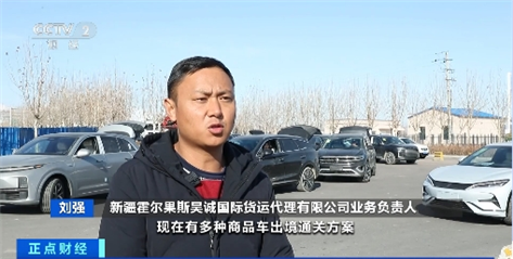 新疆霍爾果斯昊誠(chéng)國(guó)際貨運(yùn)代理有限公司業(yè)務(wù)負(fù)責(zé)人 劉強(qiáng):現(xiàn)在有多種商品車出境通關(guān)方案可供選擇,包括本地報(bào)關(guān)、一體化申報(bào)、直通轉(zhuǎn)關(guān)等多種模式。今年我們公司共出口商品車1500余輛,貿(mào)易額超3億元。