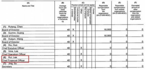 年審報告顯示,其財務總監(jiān)為李洪志的妻子李瑞(Rui Lee)