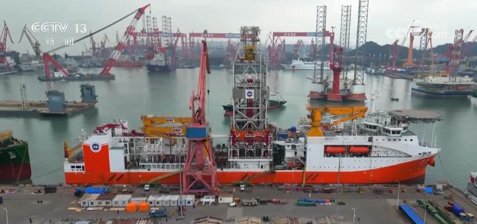 在廣東廣州市南沙區(qū)珠江口,“夢想”號大洋鉆探船正在進行設(shè)備調(diào)試和內(nèi)裝實驗室的安裝工作?!皦粝搿碧柨倗崬?3000,滿載180名船員的情況下,可連續(xù)在海上工作120天,續(xù)航里程達1.5萬海里。同時,船上鋪設(shè)了120萬米電纜,全面覆蓋信息化技術(shù),實現(xiàn)了船岸智能協(xié)同,讓“夢想”號不僅具備全球海域無限航區(qū)能力,還是全球唯一一艘具備11000米鉆探能力的科考鉆探船。未來,主要承擔國家重大科技項目和國際大洋科學鉆探任務。
