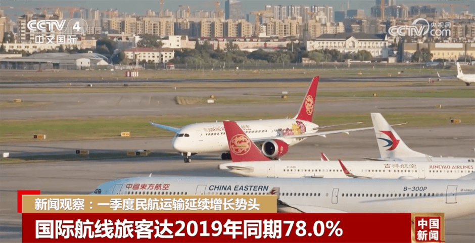 客運(yùn)方面,全行業(yè)一季度共完成旅客運(yùn)輸量接近1.8億人次,為歷年一季度客運(yùn)量最高值,同比增長(zhǎng)37.7%,較2019年同期增長(zhǎng)10.2%。其中,國(guó)內(nèi)航線完成1.6億人次,規(guī)模較2019年同期增長(zhǎng)14.3%;國(guó)際航線完成1412.0萬(wàn)人次,規(guī)模恢復(fù)至2019年同期的78.0%。