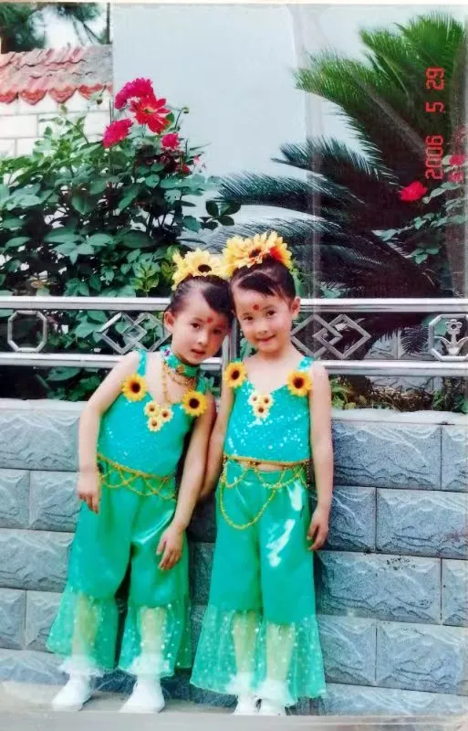 袁曉秋(左)、袁知秋(右)幼年合照