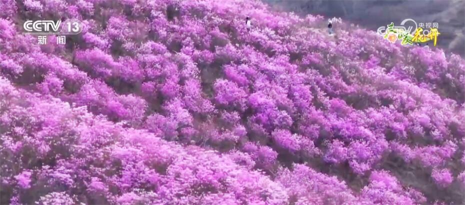 這里是遼寧省鞍山市岫巖滿族自治縣的黃嶺村,映山紅迎春綻放,粉紅色的花海綿延近十里,在山巒中鋪開,燦若云霞。一團(tuán)團(tuán)、一簇簇色彩艷麗的花朵,與高山叢林交相輝映,蔚為壯觀。各方游客紛至沓來(lái),感受春日浪漫、定格美好瞬間。預(yù)計(jì)這里的花期將持續(xù)到4月底。