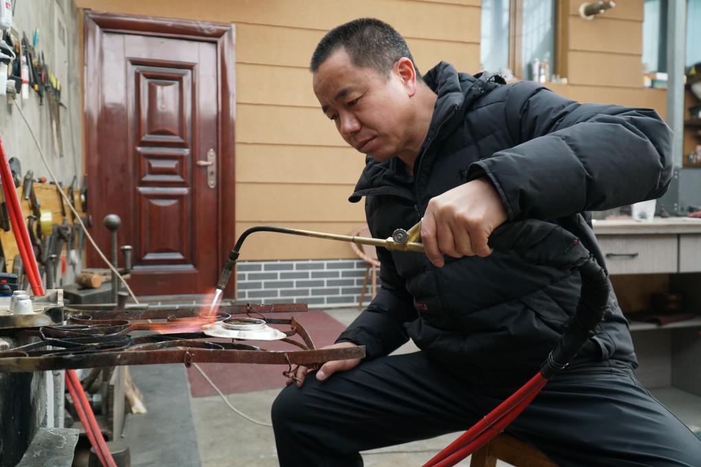 從事銀銅器制作已近30年的工匠王富邦最近正在為蒙古國的一批訂單加班加點(diǎn)。他說:“手繪出客戶指定的圖案,以火塑型,千錘萬鑿。僅一個(gè)巴掌大的酥油燈,就需要一名熟練匠人從早到晚連續(xù)三天才能完成。”