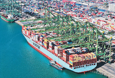 貨輪靠泊在天津港北航道內的泊位中。新華社記者 趙子碩攝