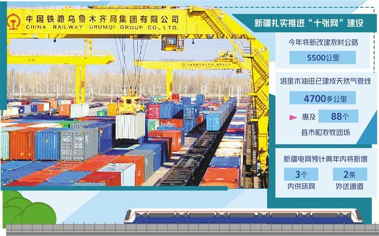 內(nèi)供外聯(lián)的電力網(wǎng)是新疆著眼于積極擴大有效投資、構(gòu)建現(xiàn)代化基礎(chǔ)設(shè)施體系,今年確定密織的“十張網(wǎng)”之一,其他“九張網(wǎng)”為東聯(lián)西出的鐵路網(wǎng)、通行便利的公路網(wǎng)、干支聯(lián)通的航空網(wǎng)、調(diào)控有力的水利網(wǎng)、覆蓋廣泛的天然氣管網(wǎng)、高效暢通的商貿(mào)物流網(wǎng)、綠色低碳高效的算力網(wǎng)、集約便捷的地下管網(wǎng)、聯(lián)通歐亞的跨境網(wǎng)。