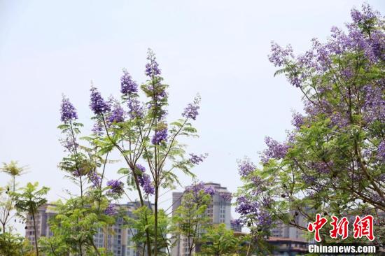 近日,廣西南寧市藍花楹盛開,藍紫色的花朵將街道裝點得如夢似幻,為城市增添了一道浪漫美景。