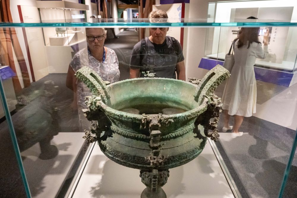 4月24日,觀眾在香港歷史博物館參觀“天地之中——河南夏商周三代文明展”。新華社記者 朱煒 攝