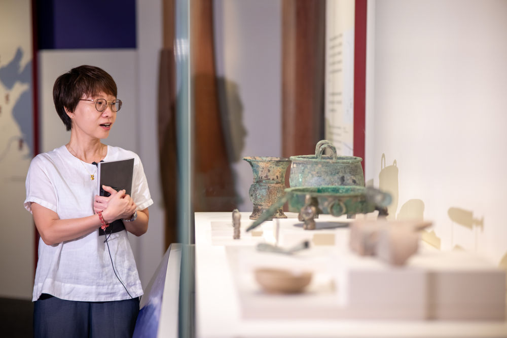 策劃、研究、選品,一年的密切合作為展覽注入巧思:展覽兼具學(xué)術(shù)性與教育性,部分內(nèi)容特意參考香港中學(xué)歷史教材;入選文物涉及多家機構(gòu),各單位經(jīng)過一番努力才安排好赴港檔期;克服燈光場地等困難,河南團隊還首次為體量龐大的春秋九鼎八簋九鬲拍攝整體大合影,以豐富圖片資料……
