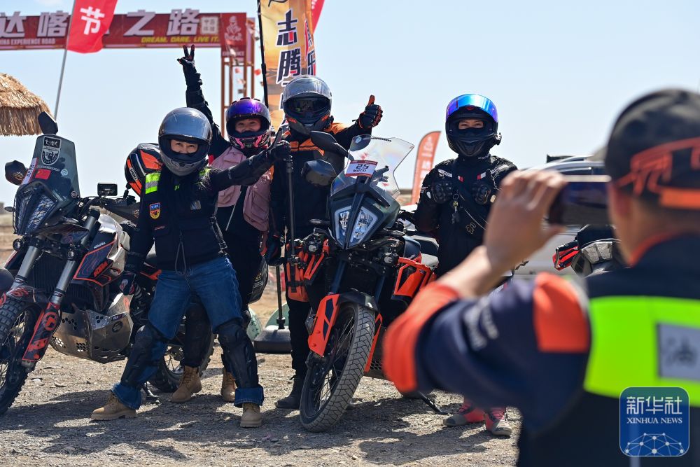 在新疆克拉瑪依市烏爾禾區(qū),車友在無人區(qū)體驗越野騎行(5月2日攝)。