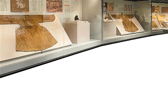除了依據(jù)文物殘留部分的形態(tài),同時(shí)期相關(guān)文獻(xiàn)的記載也成為確定墓主人袍子側(cè)擺結(jié)構(gòu)的一大依據(jù)。“正是較真于厚度、顏色,用的染料、金屬線、紗線,以及織物的形制尺寸等紡織品文物的一眾細(xì)節(jié),我們才最終復(fù)原出文物的真實(shí)面貌。”王淑娟說。