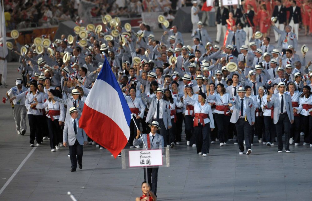 ↑2008年8月8日,法國奧運代表團(tuán)在北京奧運會開幕式上入場。
