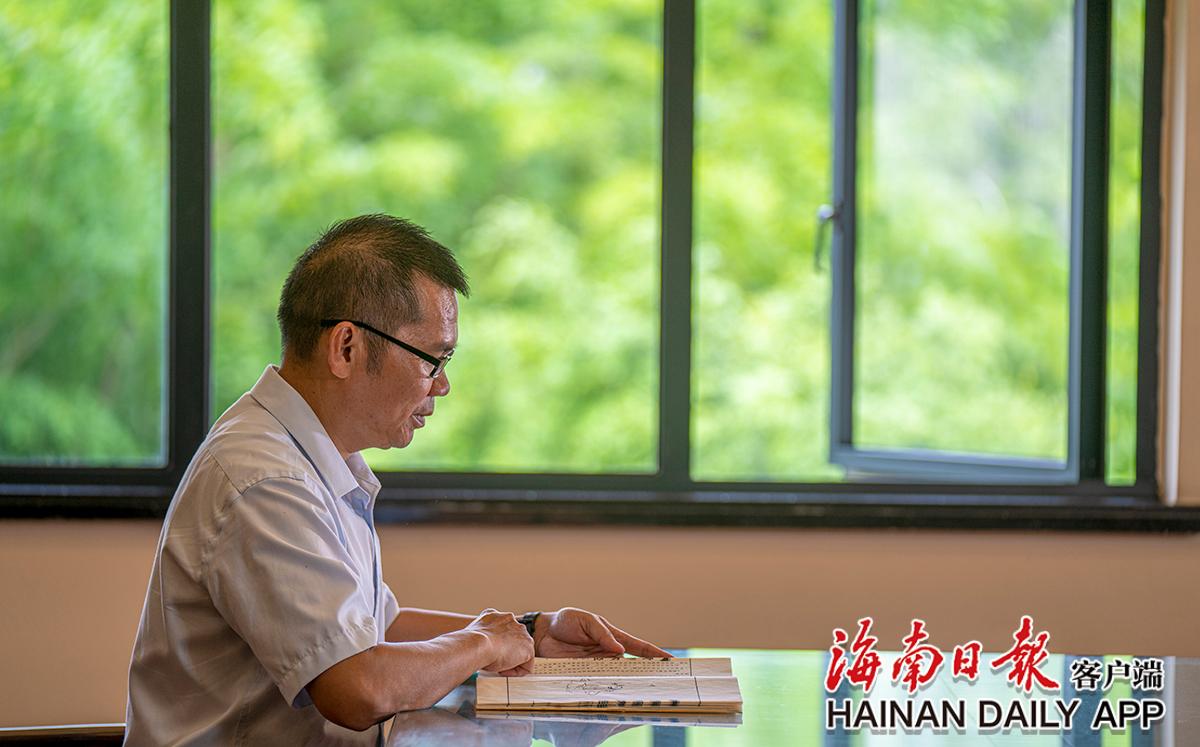 古籍修復師黃文鋒在閱讀古籍。海南日報記者袁琛 攝