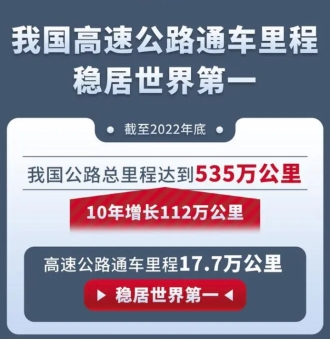 1999年,“黃金周”這個概念第一次出現(xiàn)在大眾視野里,在那一年,全國高速公路通車?yán)锍虅偼黄?萬公里。截至2022年底,我國公路總里程達(dá)到535萬公里,其中高速公路通車?yán)锍?7.7萬公里,穩(wěn)居世界第一。