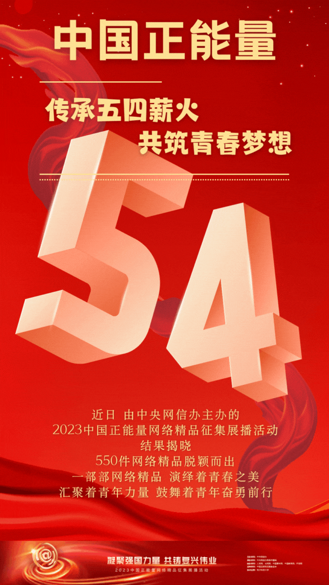 近日,由中央網(wǎng)信辦主辦的2023中國(guó)正能量網(wǎng)絡(luò)精品征集展播活動(dòng)結(jié)果揭曉,550件網(wǎng)絡(luò)精品脫穎而出。一部部網(wǎng)絡(luò)精品,演繹著青春之美,匯聚著青年力量,鼓舞著青年奮勇前行。