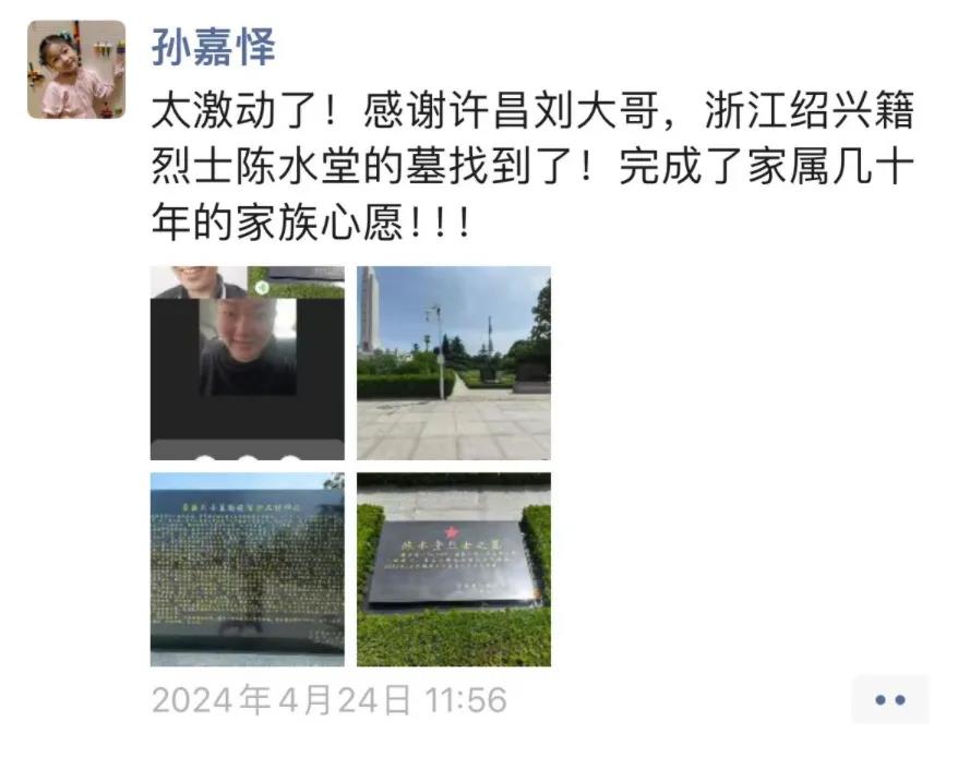 隨后,孫嘉懌聯(lián)系了許昌當?shù)氐闹驹刚?,在烈士陵園內(nèi),他們找到了陳水堂烈士的名字。從接到求助到完成,前后不到24小時。然而,在孫嘉懌經(jīng)歷的案例中,這樣的其實是極少數(shù)。