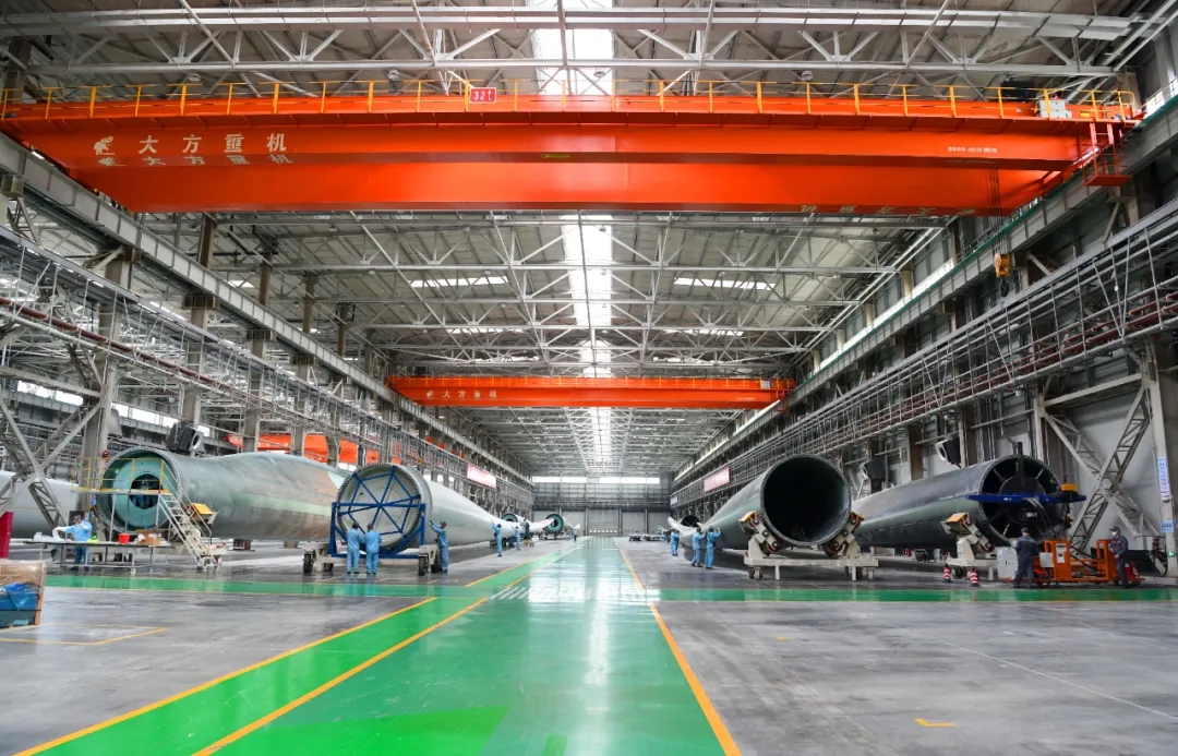 在松原市中車松原新能源裝備產業(yè)基地項目生產車間,工人正在加緊生產風電設備。該項目投資450億元,從簽約到開工僅用100天,從開工到產品下線只用了100余天。一個“風光”產業(yè)項目高速建成投產的背后,是吉林省發(fā)展風電產業(yè)決心的生動實踐。才原 攝(資料圖片)