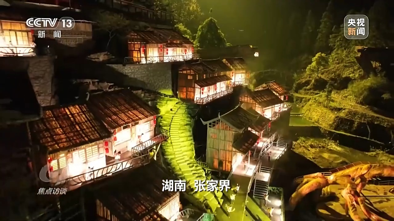今年“五一”,湖南張家界天門山景區(qū)的大型山水實景音樂劇《天門·狐仙》以實景山水為背景,融合聲、光、電、AI技術(shù)與裸眼3D,吸引了大批韓國游客觀看。