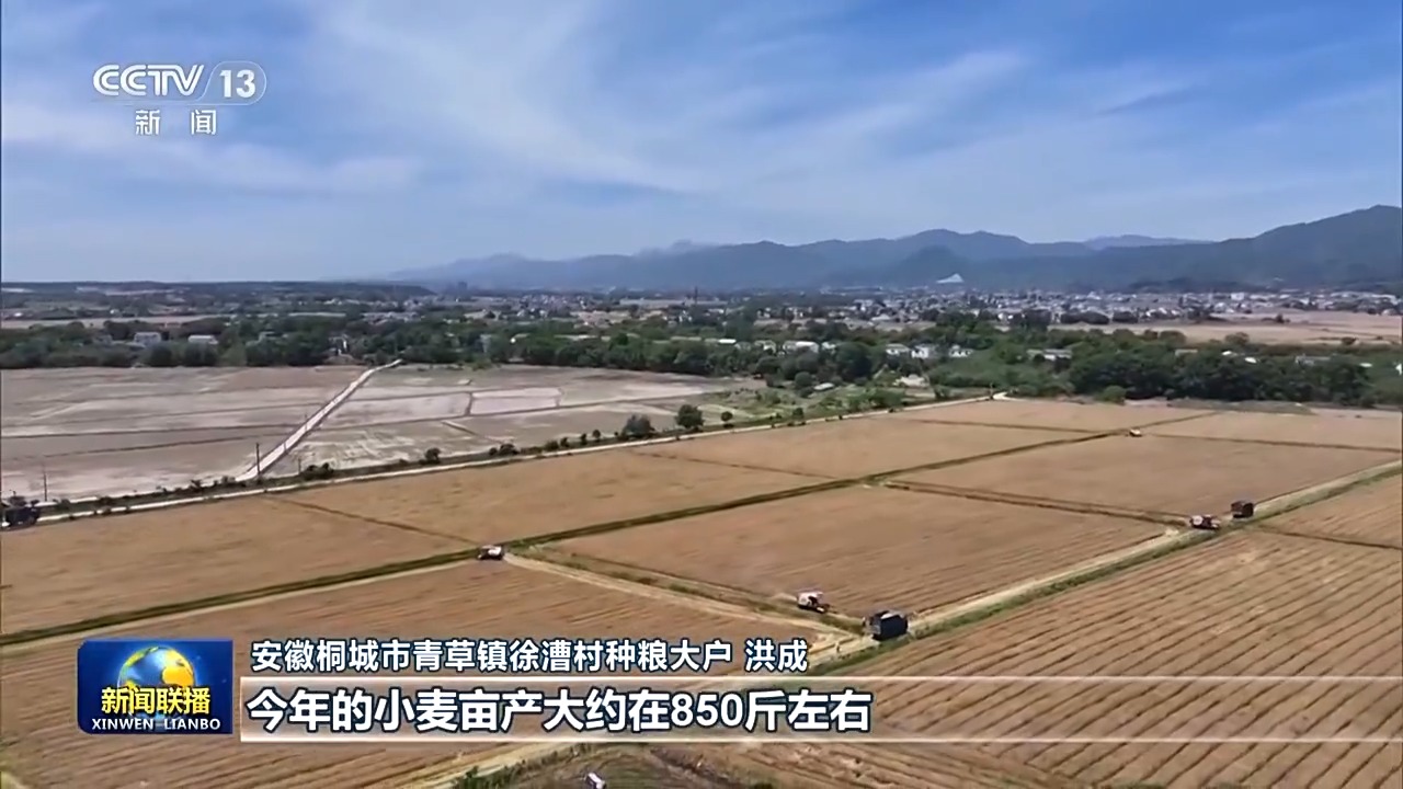 安徽桐城市青草鎮(zhèn)徐漕村種糧大戶 洪成:基本上實現(xiàn)了機(jī)械化,今年的小麥畝產(chǎn)大約在850斤左右,較前幾年相比來說增長了15%,畝產(chǎn)值大約上漲了10%左右。