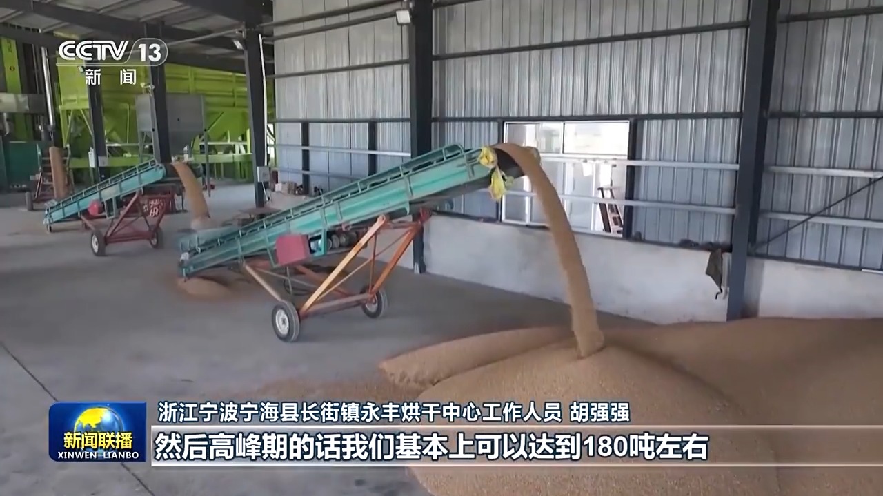 浙江寧波寧海縣長街鎮(zhèn)永豐烘干中心工作人員 胡強(qiáng)強(qiáng):一天我們目前烘干量在100來噸,高峰期我們基本上可以達(dá)到180噸左右。