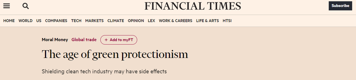 《金融時(shí)報(bào)》網(wǎng)站17日刊文稱,美國的“綠色”保護(hù)主義措施將不可避免地?cái)_亂貿(mào)易,不利于美國國內(nèi)制造商提高產(chǎn)能。對于應(yīng)對氣候變化而言,此舉或阻礙全球能源綠色轉(zhuǎn)型。