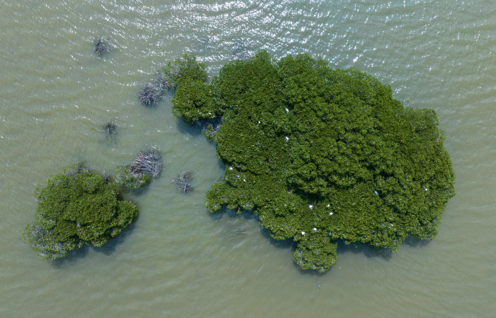 鷺鳥(niǎo)在廣東湛江金牛島的紅樹(shù)林上棲息(2024年5月17日攝,無(wú)人機(jī)照片)。廣東湛江紅樹(shù)林國(guó)家級(jí)自然保護(hù)區(qū),是中國(guó)面積最大、分布最集中的紅樹(shù)林自然保護(hù)區(qū),是世界濕地生態(tài)恢復(fù)的成功范例。