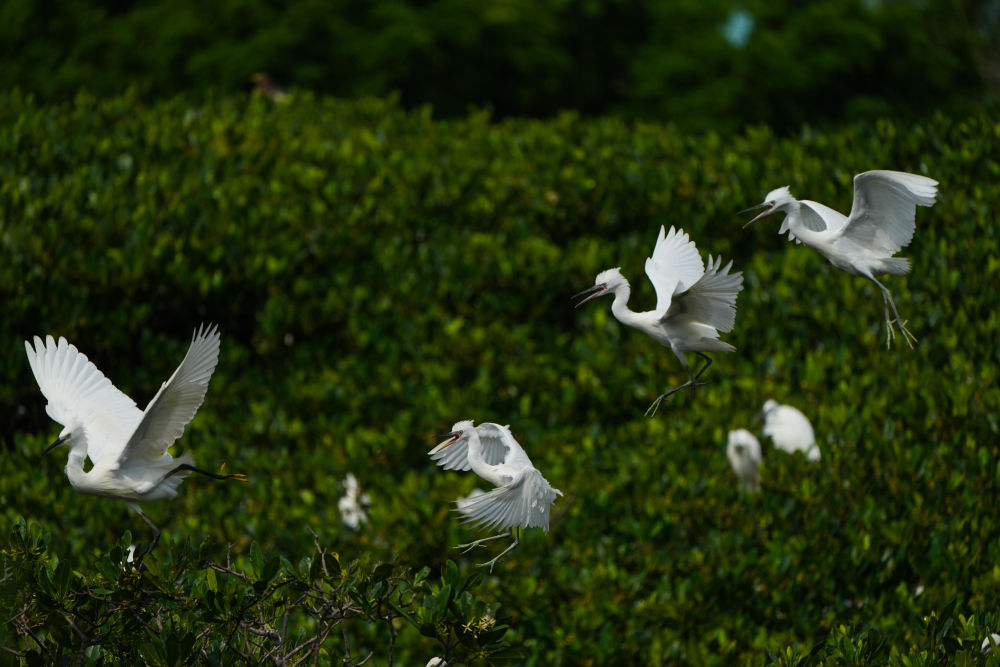 在廣東湛江霞山區(qū)觀海長(zhǎng)廊一帶的紅樹(shù)林里棲息的鳥(niǎo)類(2023年5月25日攝)。