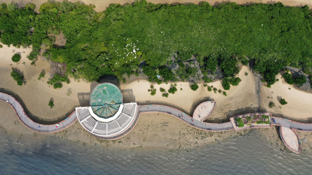 俯瞰廣東湛江市區(qū)海邊的紅樹(shù)林(2023年5月25日攝,無(wú)人機(jī)照片)。