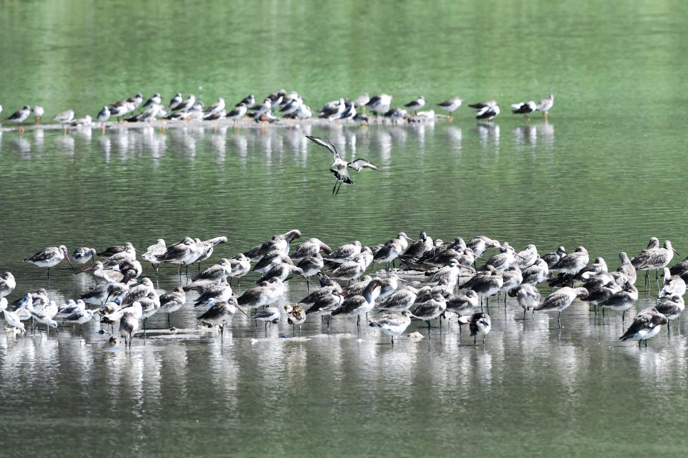 候鳥(niǎo)在深圳福田紅樹(shù)林濕地休憩(2023年10月13日攝)。