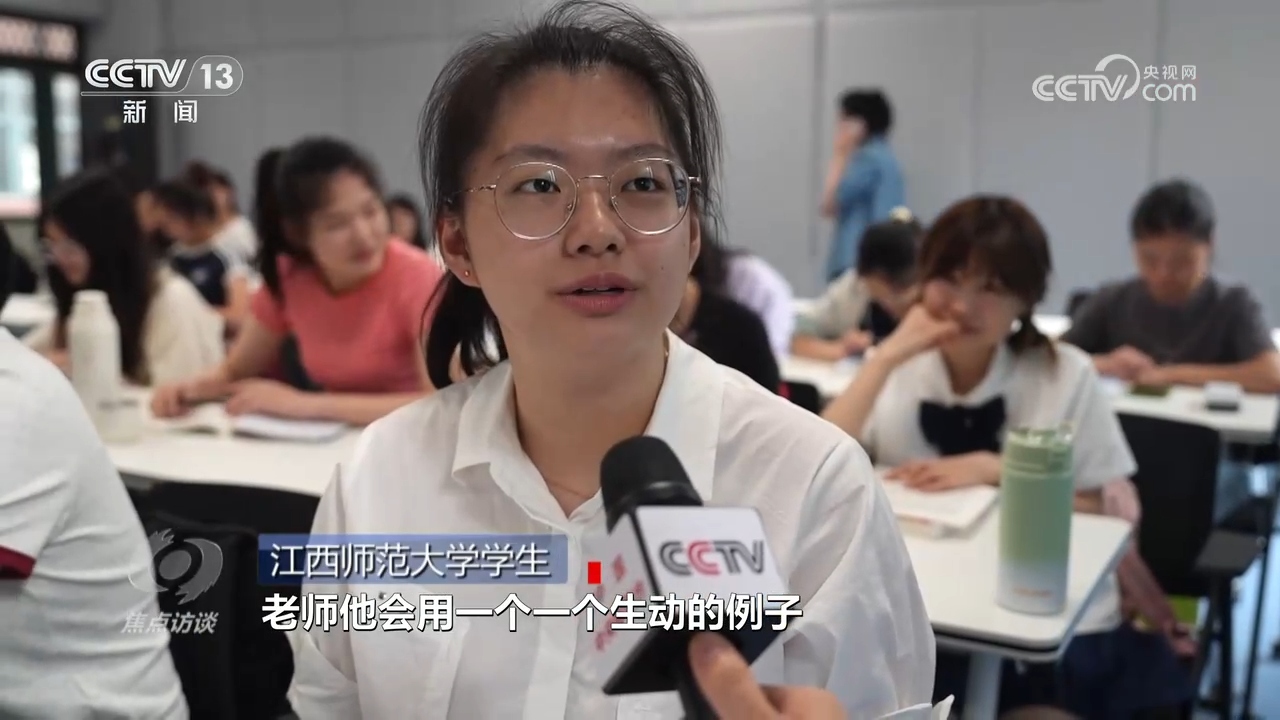 江西師范大學(xué)學(xué)生:“老師他會用一個生動的例子來表達(dá)他的觀點,然后也會用一些讓人感覺很熱血沸騰的,也有那種催人眼淚的故事,然后來激蕩我的心靈?!?/p>