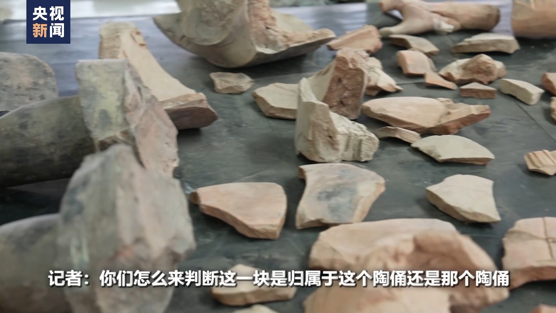 總臺(tái)記者 張誠(chéng):你們?cè)趺磥砼袛噙@一塊是歸屬于這個(gè)陶俑還是那個(gè)陶俑?