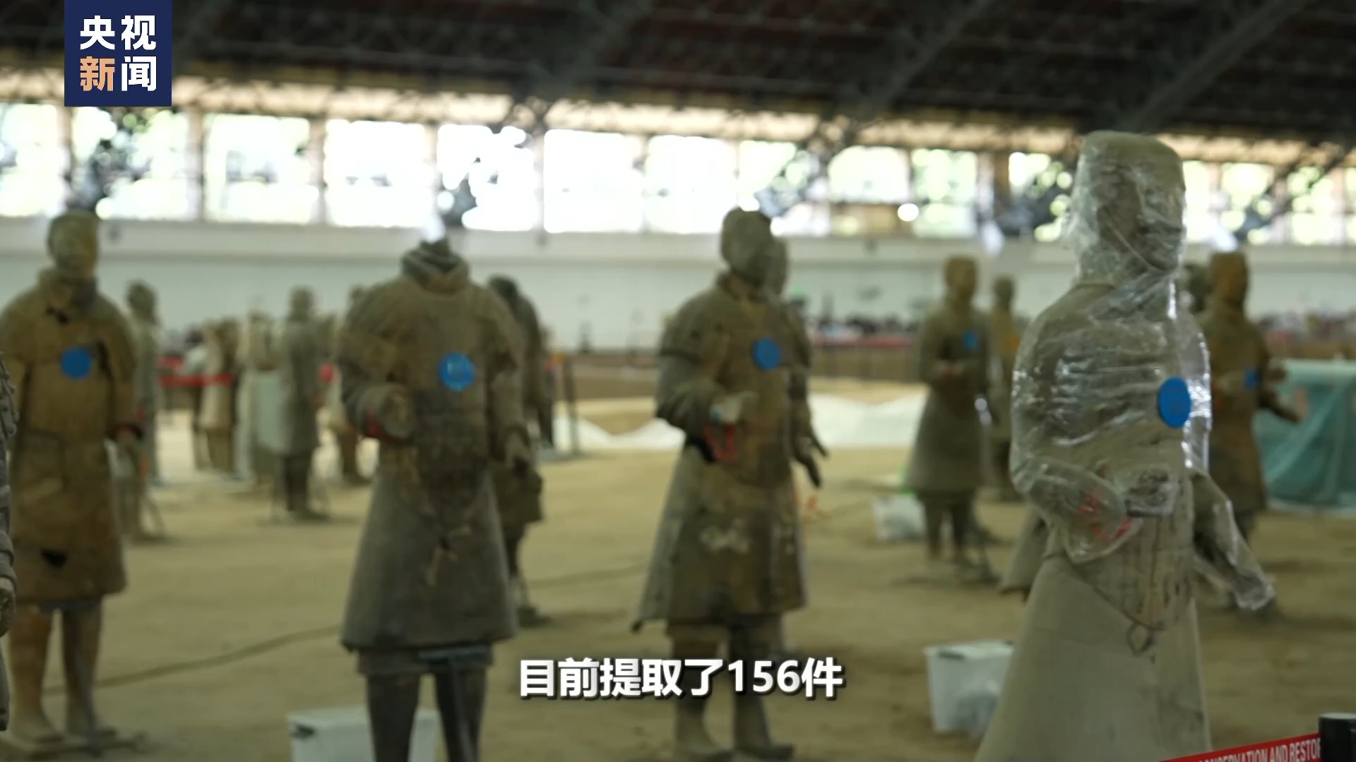 秦始皇帝陵博物院文物保護(hù)修復(fù)專家 蘭德省:第三次考古發(fā)掘,主要在秦俑一號(hào)坑T23號(hào)探方。在這個(gè)方位共挖掘了256件兵馬俑,我們剛才已經(jīng)看到目前提取了156件。其中我們修復(fù)了140多件,還有一些我們正在修復(fù)。