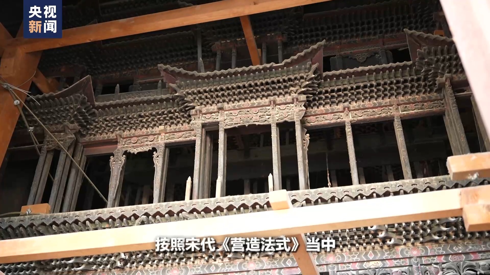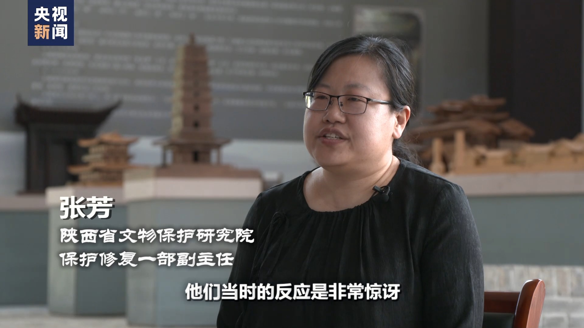陜西省文物保護(hù)研究院保護(hù)修復(fù)一部副主任 張芳:他們當(dāng)時(shí)的反應(yīng)是非常驚訝,因?yàn)檫@種純粹的,沒有用一根釘子的榫卯結(jié)構(gòu)層層疊疊,在上面天宮樓閣的一個(gè)呈現(xiàn)。他們?cè)诜▏?guó)是完全見不到,他們也想象不到。