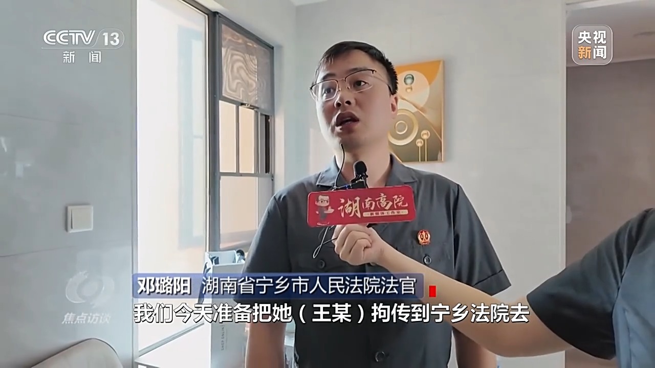 湖南省寧鄉(xiāng)市人民法院法官 鄧璐陽:我們今天準備把王某拘傳到寧鄉(xiāng)法院,看看女方對后面收取的這些財物錢款怎么還,她說她已經(jīng)當?shù)袅嘶蛘哔u掉了,我們今天帶回去查實一下這些情況。