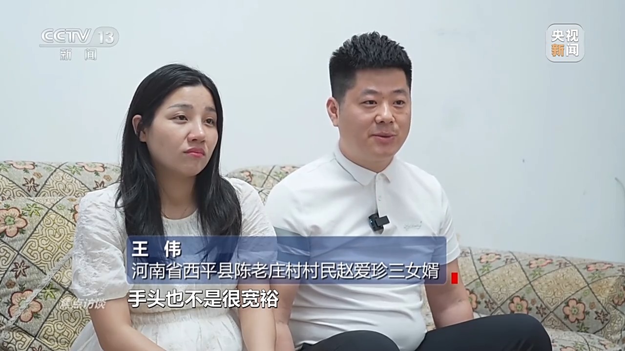 河南省西平縣陳老莊村村民趙愛珍三女婿 王偉:當時我正在創(chuàng)業(yè),手頭也不是很寬裕,就跟親戚朋友借了11萬塊錢。當時汝南縣的彩禮有16萬8的、有18萬8的,我跟女朋友商量了一下,就拿了11萬塊錢過來了。