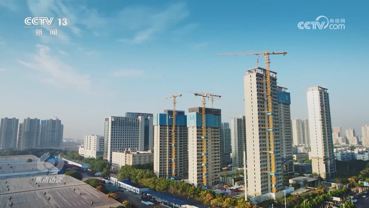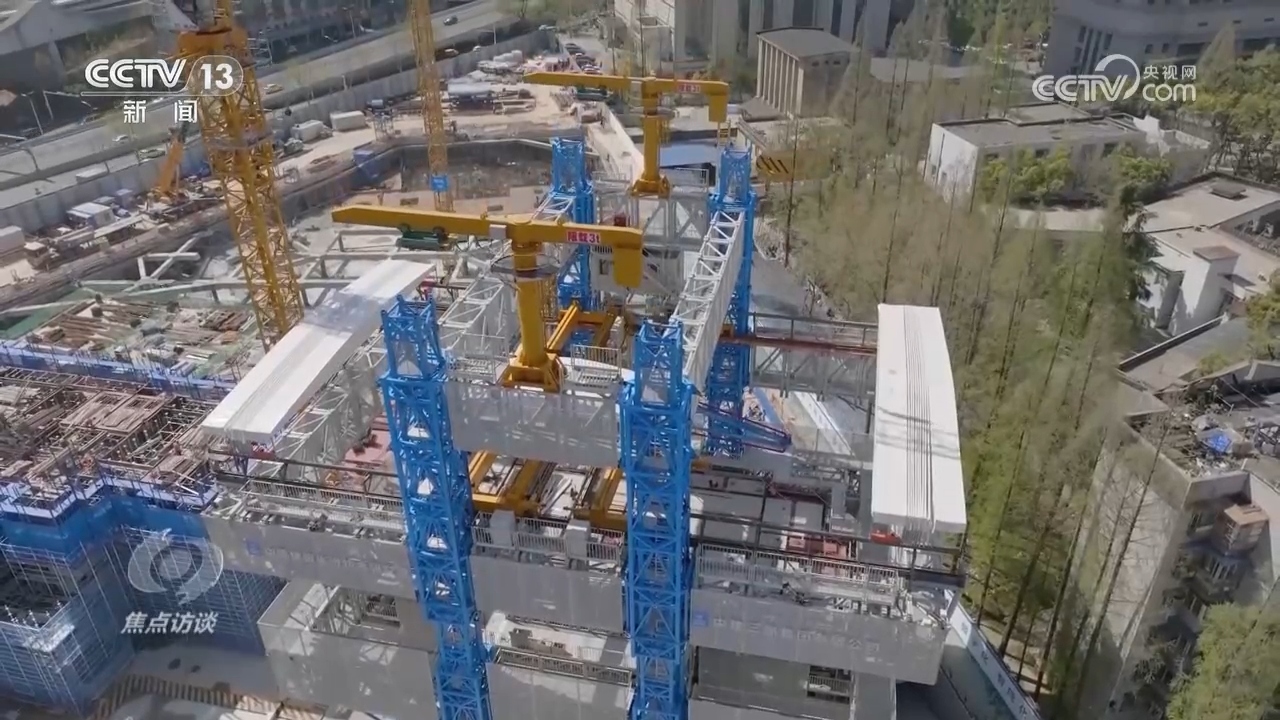 在湖北一家工廠,標(biāo)準(zhǔn)化施工構(gòu)件由工廠生產(chǎn)交付后,再由高空造樓機像拼積木一樣,將它們快速精準(zhǔn)吊裝。這樣裝配式一體化的施工方式,能讓單棟樓的總工期節(jié)約近兩個月。