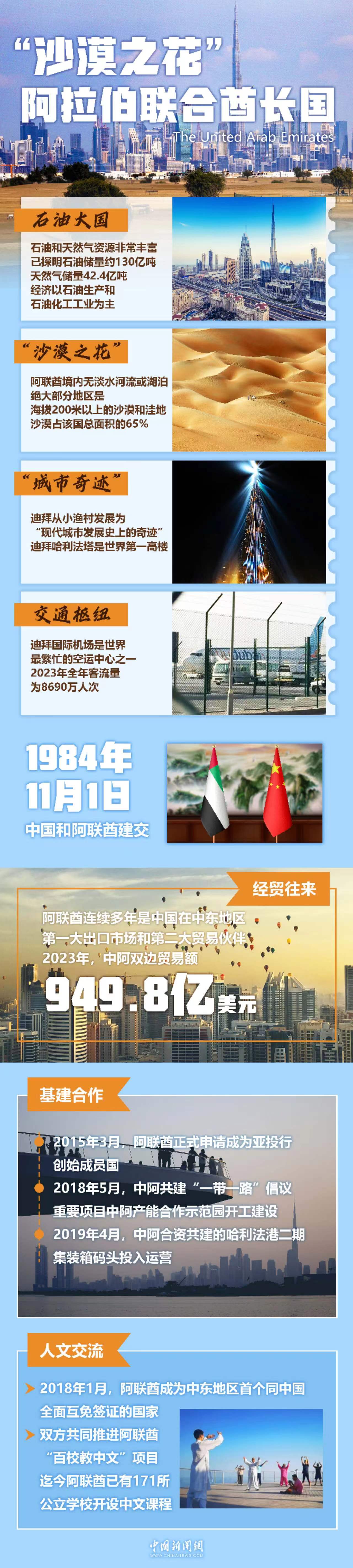 穆罕默德表示,阿聯(lián)酋同中國關(guān)系建立在相互信任、相互尊重和共同利益的基礎(chǔ)之上,各領(lǐng)域合作達到非凡水平。