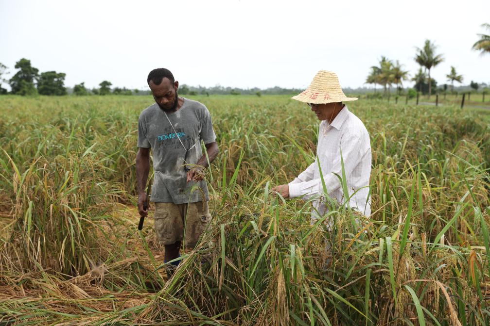 3月13日,在太平洋島國斐濟瑙索里鎮(zhèn),中國專家(右)在中國援斐濟農(nóng)業(yè)發(fā)展技術(shù)水稻項目試驗示范培訓(xùn)基地查看暴雨過后水稻倒伏情況。新華社發(fā)(桑欽龍攝)