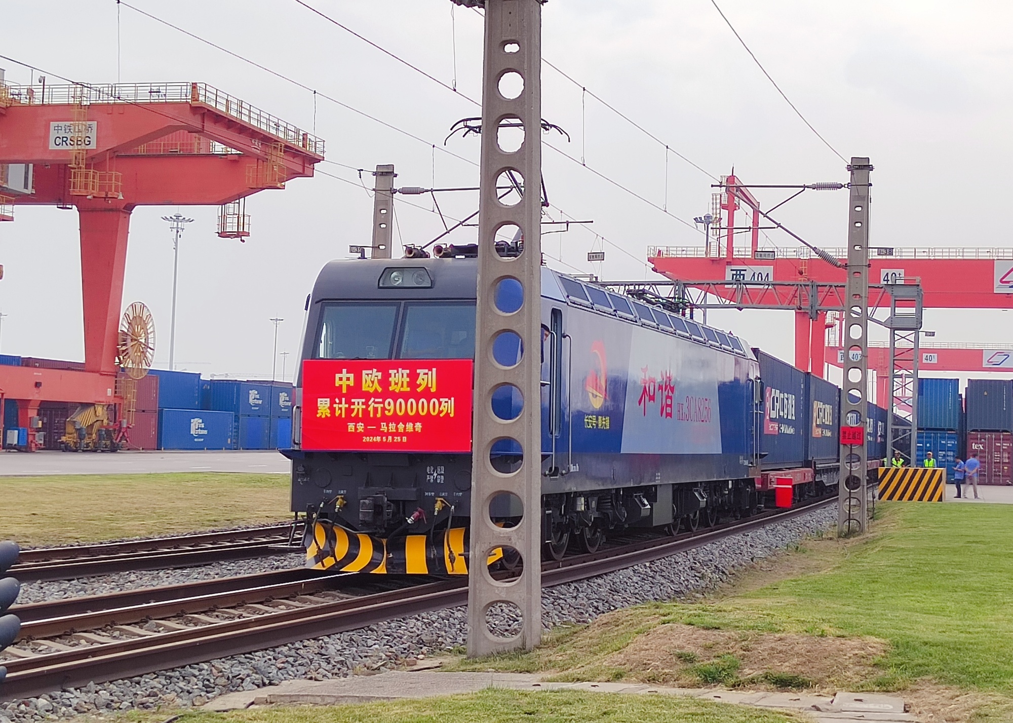 中歐班列,晝夜馳騁在歐亞大陸上,聯(lián)通東西,暢通貿(mào)易,是“絲綢之路經(jīng)濟帶”上的“鋼鐵駝隊”。今年5月24日,隨著X8157次中歐班列從西安國際港站發(fā)出,一路向西開去,中歐班列已經(jīng)累計開行9萬列。從2013年開行80列到2016年開行1702列,再到2023年開行1.7萬列,十年來,中歐班列不斷跑出“加速度”,目前已通達歐洲25個國家223個城市,連接11個亞洲國家一百多個城市,服務(wù)網(wǎng)絡(luò)基本覆蓋歐亞全境,年運輸貨值由2016年80億美元增長到2023年的567億美元。