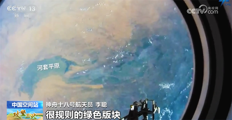 看完黃河沿線各省市區(qū)隨著“三北”工程建設(shè)而發(fā)生的變化,不知道您是否好奇,如果我們再把視角拉高,在太空俯瞰“三北”大地,又是怎樣的一幅景象呢?在距離地球約400公里的上空,神舟十八號航天員乘組的三名航天員正在中國空間站執(zhí)行任務(wù),他們也拍攝下了一些“三北”地區(qū)的畫面,我們一起去看看。