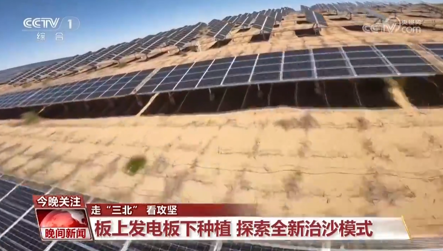 總臺記者 李欣蔓:治沙的腳步不但沒有停,還在不斷探索新的治沙模式?,F(xiàn)在我們看到的是鄂爾多斯一個已經(jīng)建好、并網(wǎng)發(fā)電的光伏項目,板上發(fā)電,板下種植,一個空間全方位利用。三重防線,構(gòu)建起了全新的生態(tài)治沙模式。有一個數(shù)據(jù)值得我們關(guān)注,這里的光伏項目占地39萬畝,與此同時,生態(tài)治理面積也將規(guī)劃完成39萬畝。在國家推進(jìn)光伏治沙項目開發(fā)建設(shè)的進(jìn)程中,我們看到越來越多的企業(yè)參與其中,在發(fā)展新能源產(chǎn)業(yè)的同時共同擔(dān)負(fù)起治沙的責(zé)任,為一片藍(lán)海,一片綠洲的建設(shè),貢獻(xiàn)更多的力量。