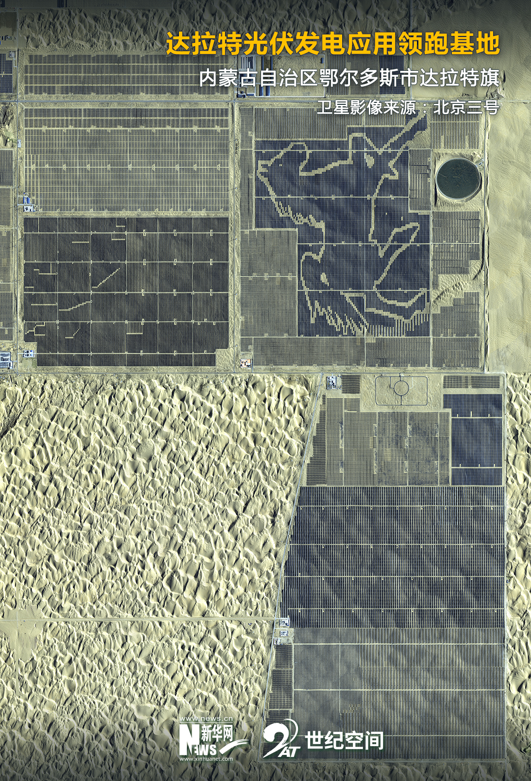 在被稱為“死亡之?!钡膸?kù)布其沙漠,有一座4萬(wàn)多畝的光伏發(fā)電基地?;刂校黄ビ?9.6萬(wàn)塊光伏板拼成的“駿馬”成為當(dāng)?shù)氐男碌貥?biāo)。光伏板不僅是固沙的一道防線,還能遮擋一定的陽(yáng)光照射,減少下面土壤的水分蒸發(fā),為板下的植物的生長(zhǎng)提供了有利條件。