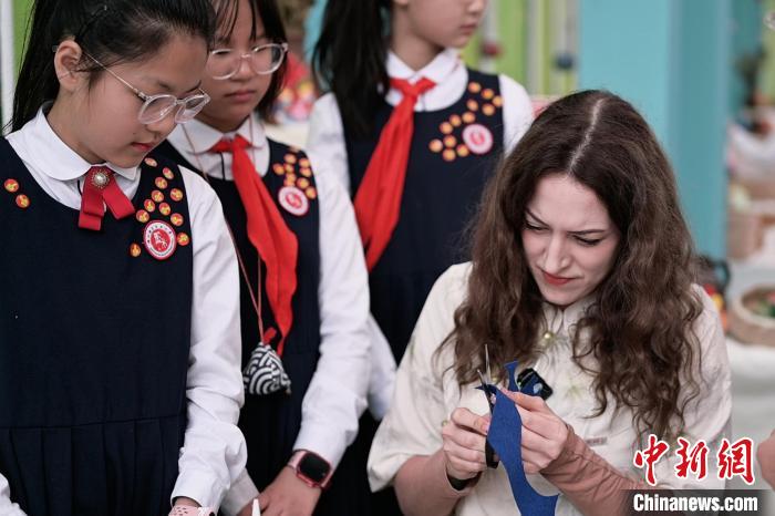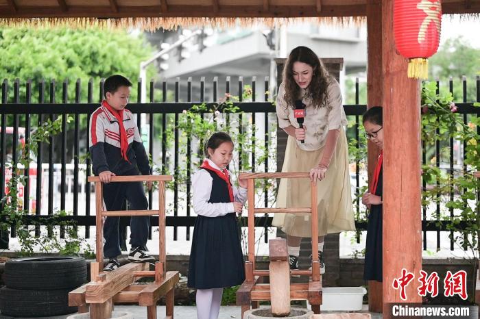 28歲的宋瀟佩來自波蘭,是重慶大學(xué)的一名留學(xué)生,這是她在中國(guó)度過的第一個(gè)端午節(jié)。為學(xué)習(xí)端午傳統(tǒng)文化習(xí)俗,宋瀟佩特地穿上中式服裝,走進(jìn)重慶市艾草文化研究指導(dǎo)基地——重慶兩江新區(qū)嘉木小學(xué)校,以艾草為媒,和孩子們一同學(xué)習(xí)“艾+”學(xué)科生活融創(chuàng)教育課程,感受傳統(tǒng)文化在節(jié)日里煥發(fā)的新生機(jī)。
