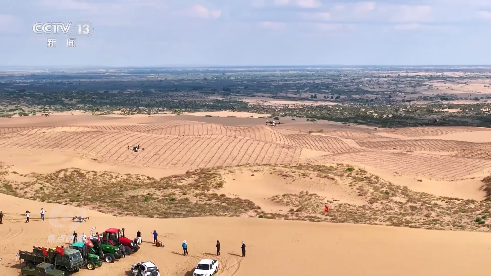 在距離地球約400公里的中國(guó)空間站,神舟十八號(hào)航天員看到,在三北區(qū)域,有一些像拼圖一樣很規(guī)則的綠色版塊,正在一點(diǎn)點(diǎn)向土黃色地帶鋪展延伸。
